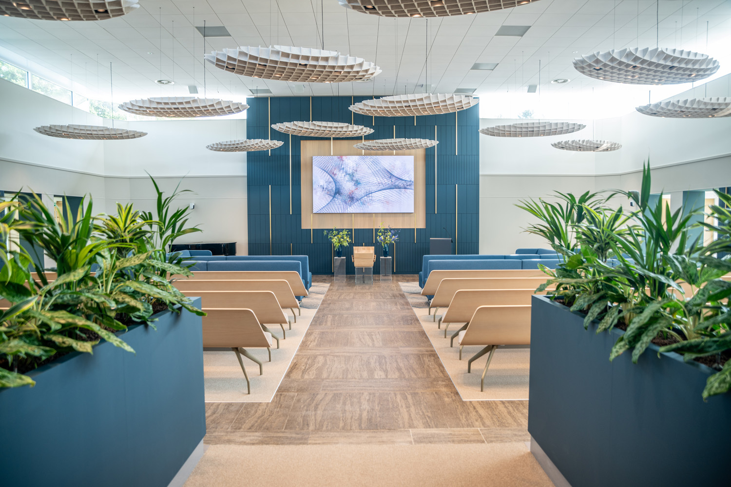 Unsere Aulen sind sorgfältig eingerichtet, damit eine Trauerfeier in einer angenehmen Atmosphäre stattfinden kann. Mit verschiedenen Möglichkeiten im Bereich Bild und Ton kann die Trauerfeier individuell gestaltet werden. Auch ein Livestream ist möglich, sodass Menschen, die nicht anwesend sein können, die Feier live mitverfolgen können. Nach der Feier können Sie den Verstorbenen im kleinen Kreis zum Krematorium begleiten.