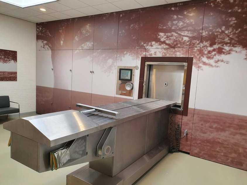 Dieser Raum bietet die Möglichkeit, beim Abschied dabei zu sein. Eine Begleitung ist fĂŒr maximal 10 Personen möglich, nach Absprache und abhĂ€ngig von der Situation.