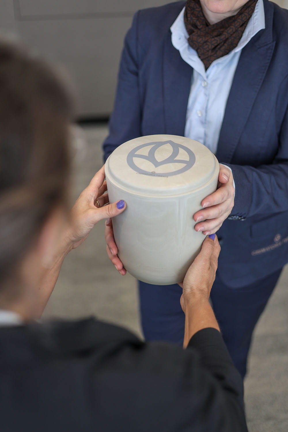 Nach Ablauf der gesetzlichen Frist von einem Monat kann die Asche abgeholt werden. Diese wird in einem runden Aschebehälter übergeben, der speziell für uns aus Plastikmüll aus dem Meer hergestellt wurde. So tragen wir zu einer nachhaltigeren Welt bei.