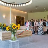 Unser persönlicher Ansatz hilft Ihnen dabei, eine angemessene Trauerfeier zu organisieren. Diese kann in der Aula stattfinden, aber ebenso gut im schönen umliegenden Garten in Form einer Trauerfeier unter freiem Himmel. Wer vor oder nach der Trauerfeier noch zusammen sein möchte, kann im Gästezimmer etwas essen oder trinken. Darüber hinaus steht ein Familienzimmer für die engsten Angehörigen zur Verfügung.
