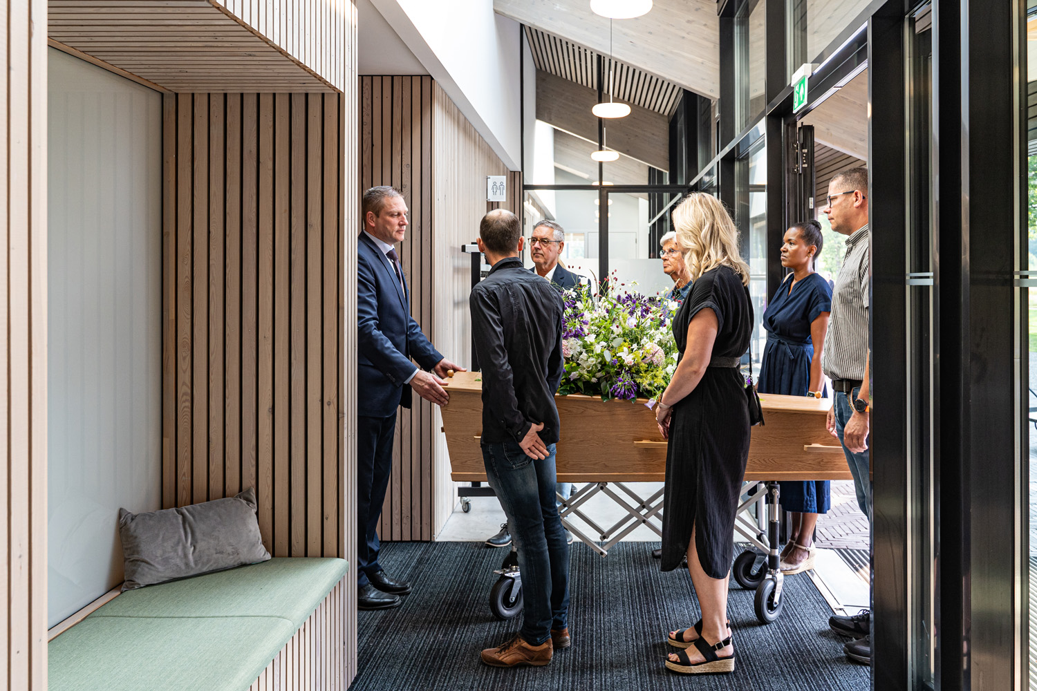 Wir empfangen die direkt Betroffenen in aller Ruhe in unserem Familienzimmer. Die übrigen Gäste werden in einem separaten Raum begrüßt. Wir begleiten den Verstorbenen mit Sorgfalt zum Krematorium, wo anschließend die Einäscherung stattfindet. Darüber hinaus umfasst dieser Service: